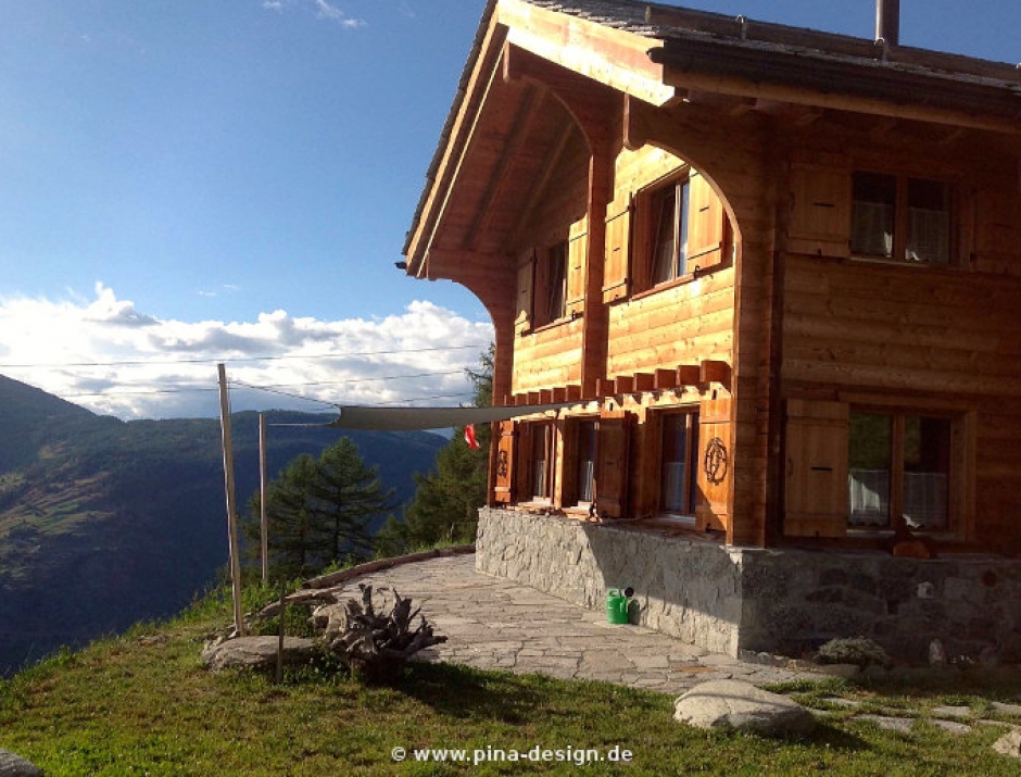 Waliser Alpen, Luftline 15m vom Matterhorn - Sonnensegel auf BergterrasseWaliser Alpen, Luftline 15m vom Matterhorn - Sonnensegel auf Bergterrasse