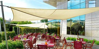 Geschäftsführer Herr Heusing plante die Erweiterung der Sonnenterasse und manuell rollbare Sonnensegel von Pina Design® boten genau das Gesuchte: langlebigen, flexiblen und komfortabel zu bedienenden Regen- und Sonnenschutz mit dem gewissen repräsentativen Chic, passend zum exklusiven Ambiente des 5-Sterne Hotels.