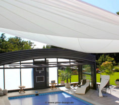 Es ist nicht zuletzt das atemberaubende maritime Flair, das dieses automatisches Segelsystem vor anderen Vorrichtungen zum Sonnenschutz und Regenschutz auszeichnet. Schlanke, bis zu sechs Meter hohe Segelmasten, großflächige Segel, ein breites Angebot an Farben, dynamische Segelformen und eine spektakuläre Verspannung: All diese Elemente schaffen ein Gesamtbild staunenswerter Schönheit und zeugen von exklusiver Lebensart - massgefertigt und in Höhe, Größe, Farbe, Form, Befestigung und Ausrichtung auf Ihre individuellen Vorstellungen zugeschnitten.