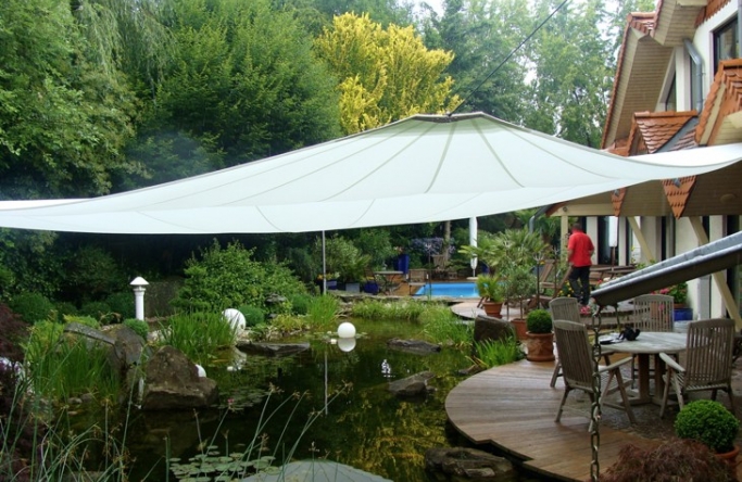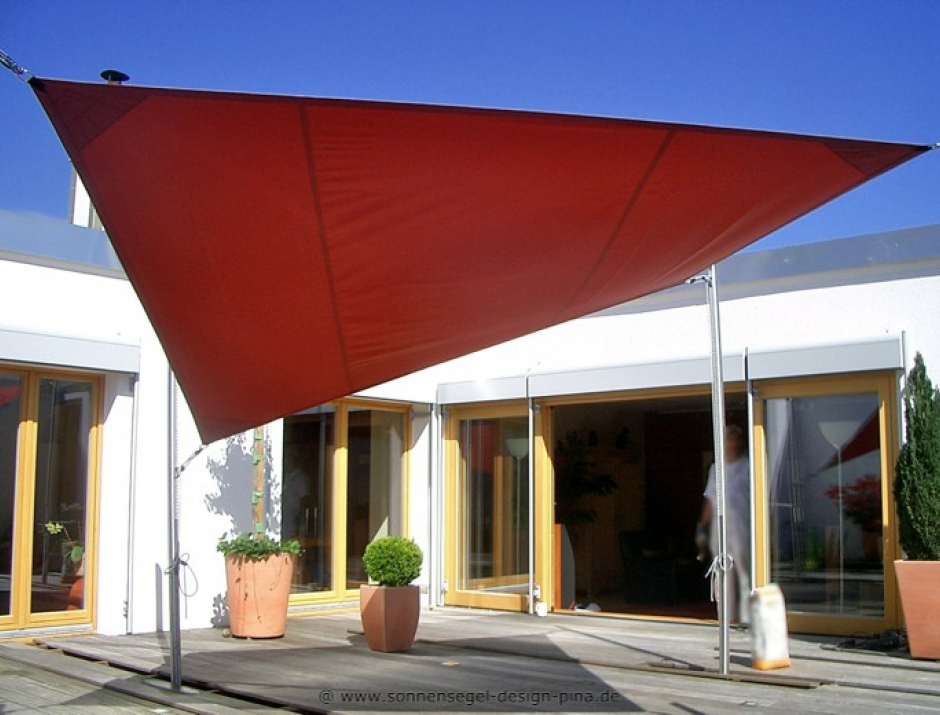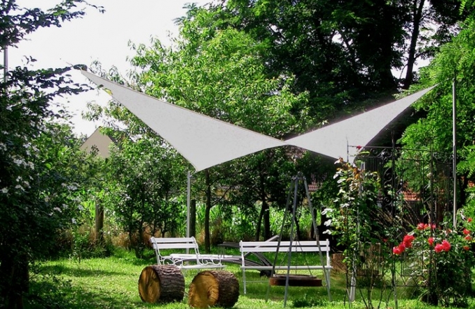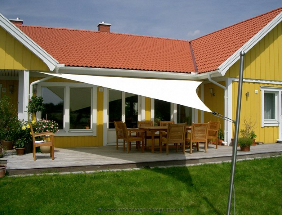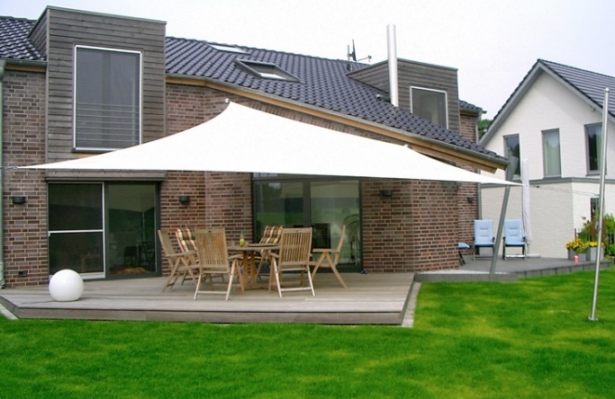Die Möglichkeit, Sonnensegelanlagen harmonisch in die Architektur von Haus und Garten zu integrieren, kommt besonders anschaulich zur Geltung.
