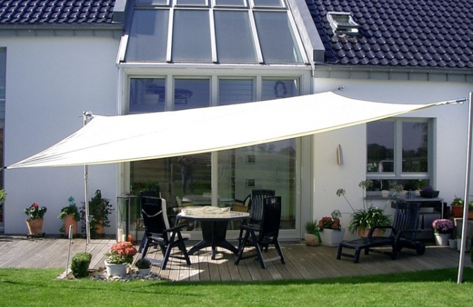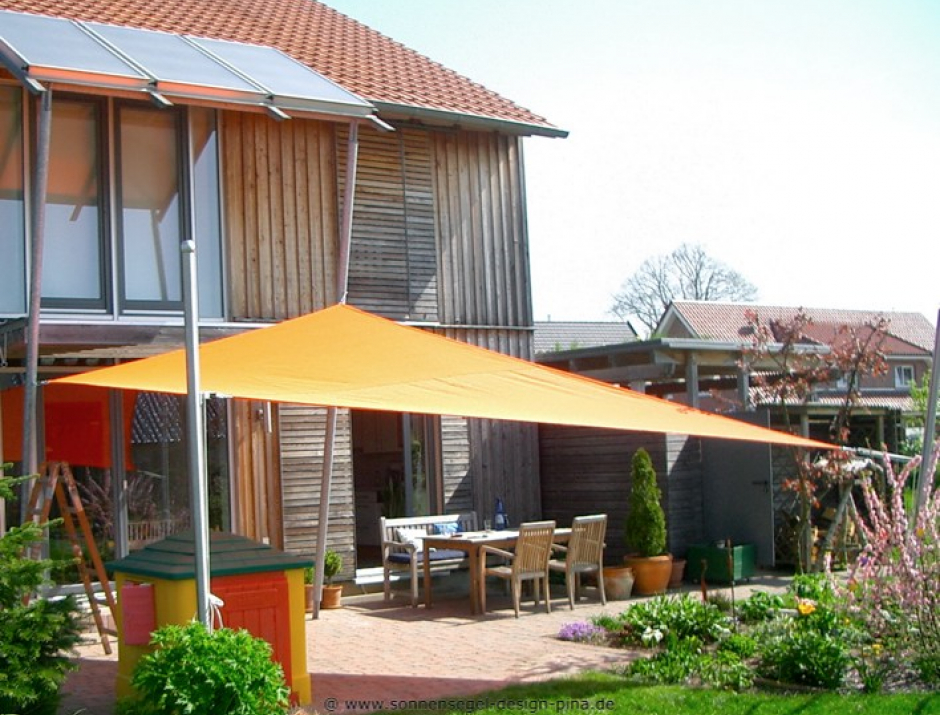 Die Möglichkeit, Sonnensegelanlagen harmonisch in die Architektur von Haus und Garten zu integrieren, kommt besonders anschaulich zur Geltung.