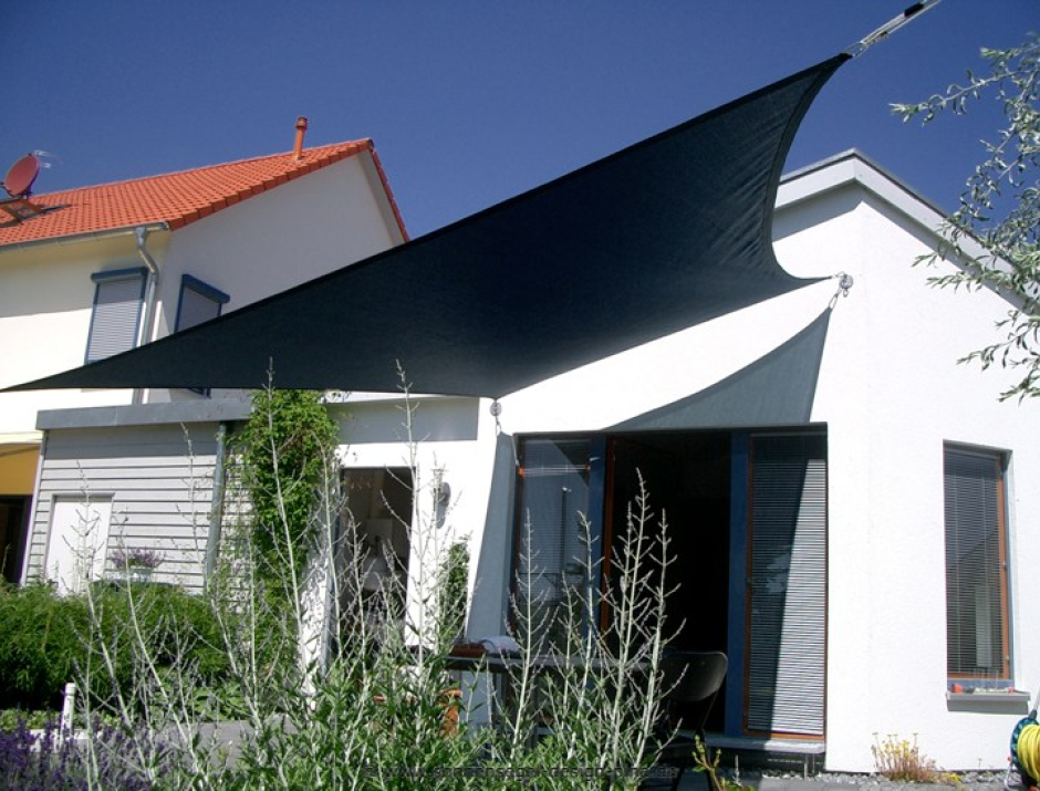 Die Möglichkeit, Sonnensegelanlagen harmonisch in die Architektur von Haus und Garten zu integrieren, kommt besonders anschaulich zur Geltung.